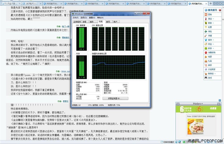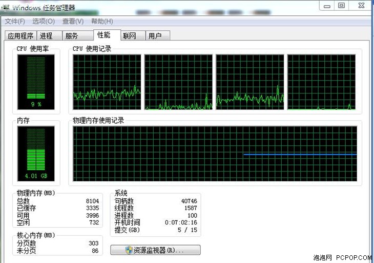 首先就是像小编这样喜欢没事关东西且无太多需求的,每天早上来到公司以后,打开电脑,习惯性的登陆QQ等几个社交软件,这时候电脑内存为1.77G。打开5个网页和一个Excel表之后,显示内存占用2.45GB。这时候几乎就是小编日常工作的一个正常状态,即使网页开多了,也会关掉几个没用的,以免出现密集恐惧症!到了中午也顶多是再打开个《英雄联盟》,这时候内存会达到3.8GB左右,即使这样,也不会觉得太卡,但这也快达到了满负荷的状态。