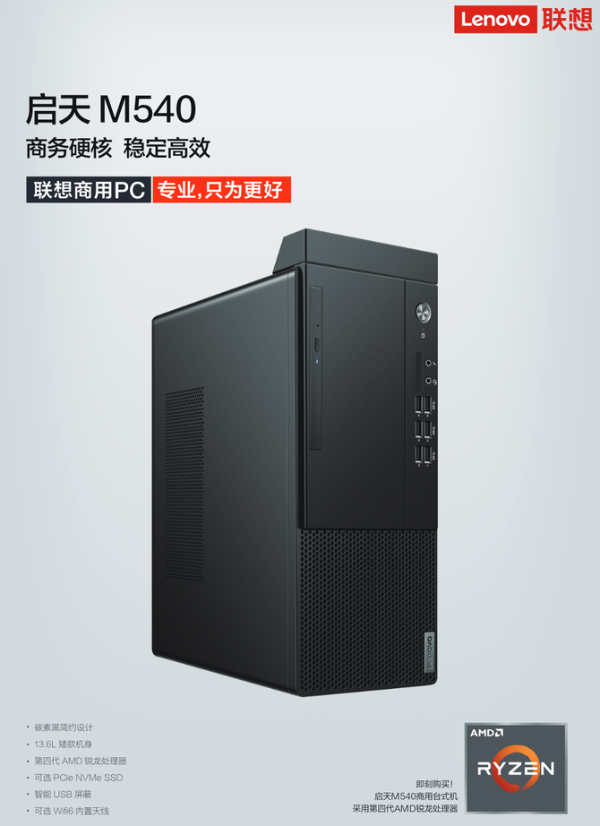 随着时代的发展,电脑已经成为大家生活工作的必备品,尤其是企业级用户,办公台式机的更新换代比以往更加频繁。相对于个人娱乐台式机,公司电脑主机不仅需要优秀的性能,更需要良好的售后保障。所以企业级用户在选择商用台式机的时候更注重品牌,正如对每个配件的严格把控,注重质量和售后的联想就是广大用户最值得选购的品牌!近日,联想推出了采用AMD(超威)锐龙4000G系列台式处理器的启天M540商用台式机,年后准备更换办公整机的用户快来了解一下吧。