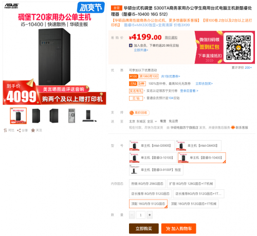 作为一台主打性价比的台式电脑,华硕碉堡S300TA选配了英特尔酷睿i5-10400F处理器,采用六核十二线高频内存,无论是影音娱乐还是日常办公都难有卡顿情况。存储方面,华硕碉堡S300TA配备了512GB高速SSD固态硬盘,且支持再配置一块HDD机械硬盘,组成SSD+HDD双硬盘组合,这使得电脑在存储大量的数据资料、影音文件后,也能保障开机速度、软件运行速度达到最佳。