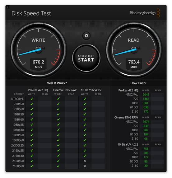 在ATTO Disk Benchmark测试中,存储卡的连续读取速度达到800MB/s,写入速度也超过700MB/s,基本已经赶超目前消费级桌面固态硬盘性能。