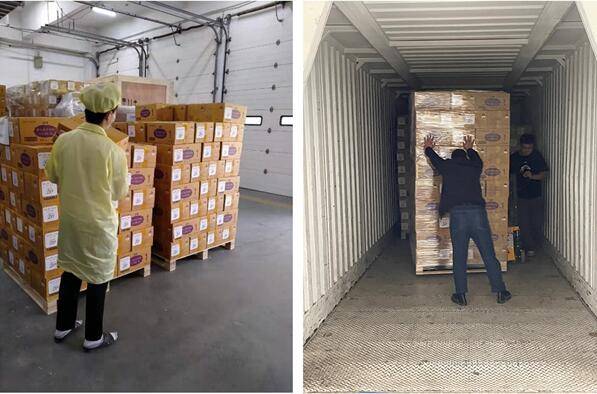 2021年5月19日,威刚科技小伙伴们将一箱箱奶粉搬上送往去四川大凉山和上海慈善基金会的货车。